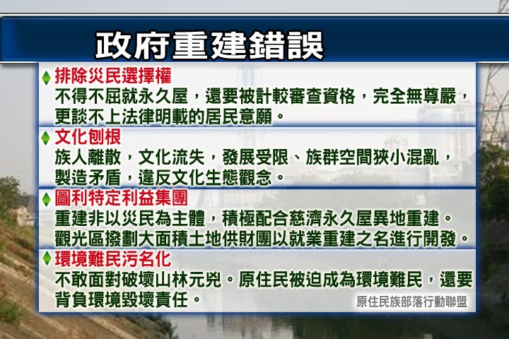 保障國人安全?不懂原住民?政府重建犯了多少錯誤?重建過程中,原住民受到哪些傷害?原民文化遭到什麼衝擊?